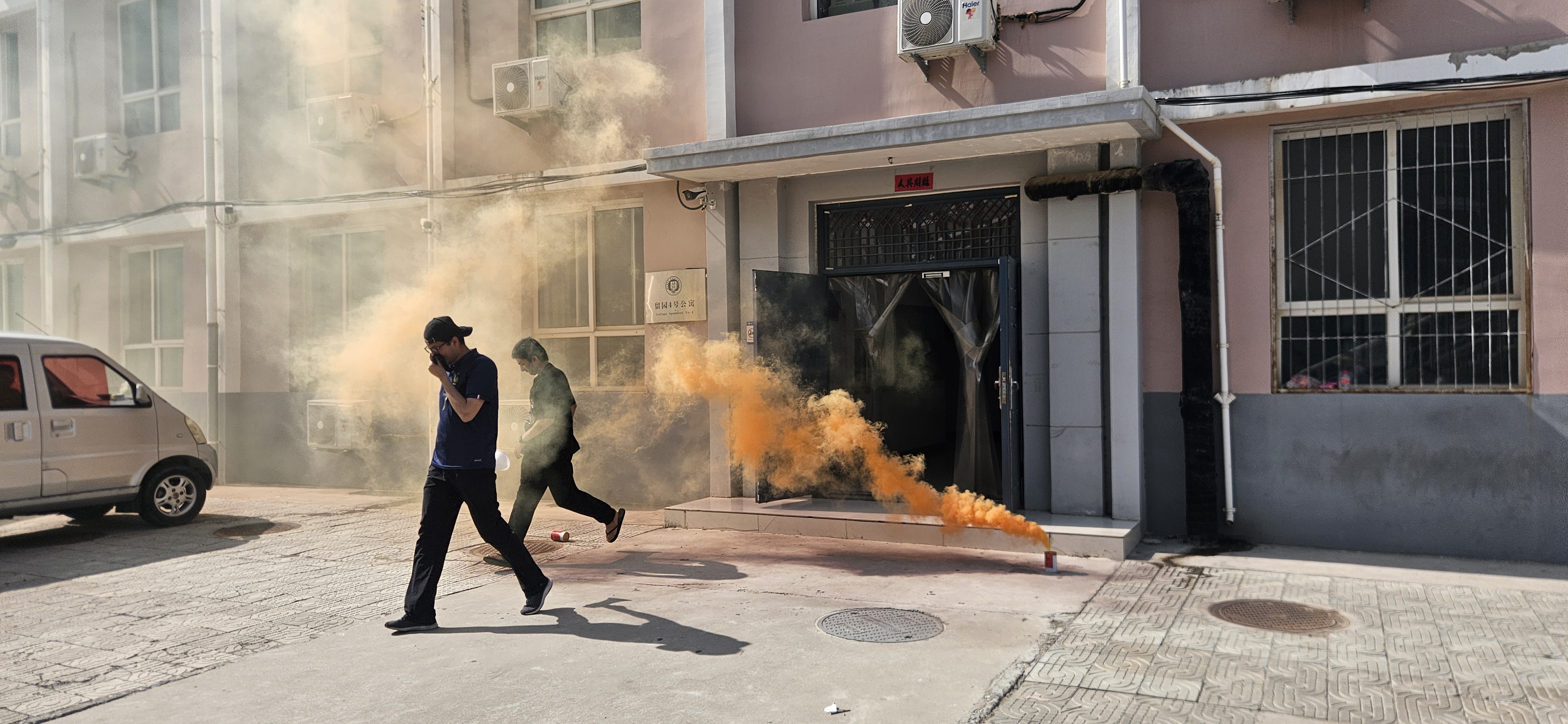 讲座结束后,参训师生在工作人员引导下开展了火灾疏散逃生演练。李昊辰科长将演练步骤、疏散路线、注意事项等消防逃生知识向同学们进行了讲解,强调“冷静判断、迅速反应”的逃生原则。15点30分,安全工作处工作人员在宿舍楼内模拟释放烟雾弹,之后随着消防报警声的响起,各楼层指挥人员迅速到班到岗,沉着冷静地指挥学生用湿毛巾捂住口鼻,尽量将身体放低撤离宿舍,安全、快速、有序地疏散到宿舍楼前空地处,安全员马上清点人数并向现场指挥汇报,火灾疏散逃生演练活动取得了圆满成功。