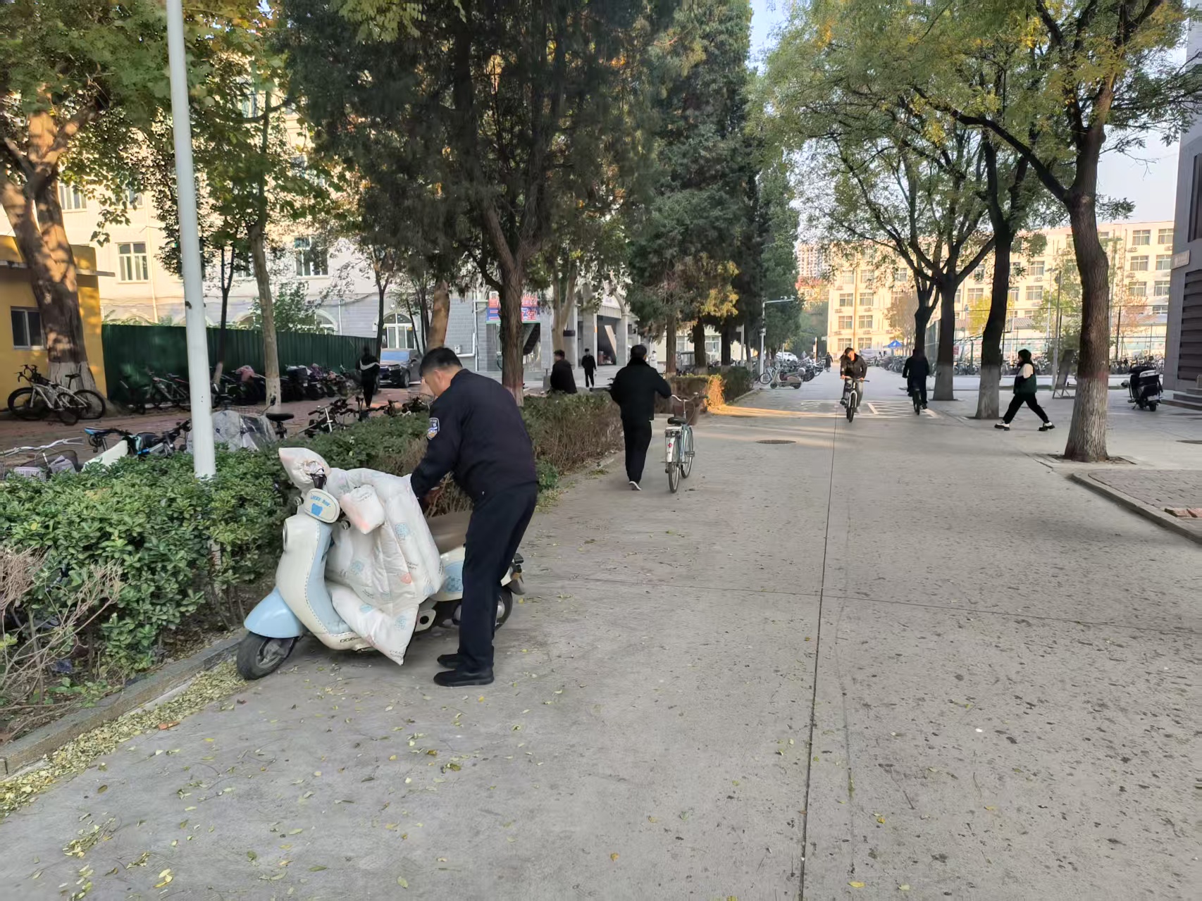行动中,工作人员对长期占用、堵塞消防通道的自行车与杂物进行了集中清运与规范摆放,确保了通道的物理畅通。同时,为巩固整治成效、强化警示提醒,安全工作处在各关键通道入口处增设了“禁止停放车辆”指示牌、施划了醒目的“消防通道,禁止占用”标识线。
